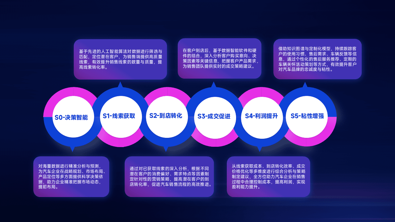 通过拓宽潜在客户来源、、、优化线索分配并提高到店转化率,,,以增强销售效率。。同时,,,利用线索数据不断优化分析模型,,有效提升转化率,,,扩大营销影响力。。。